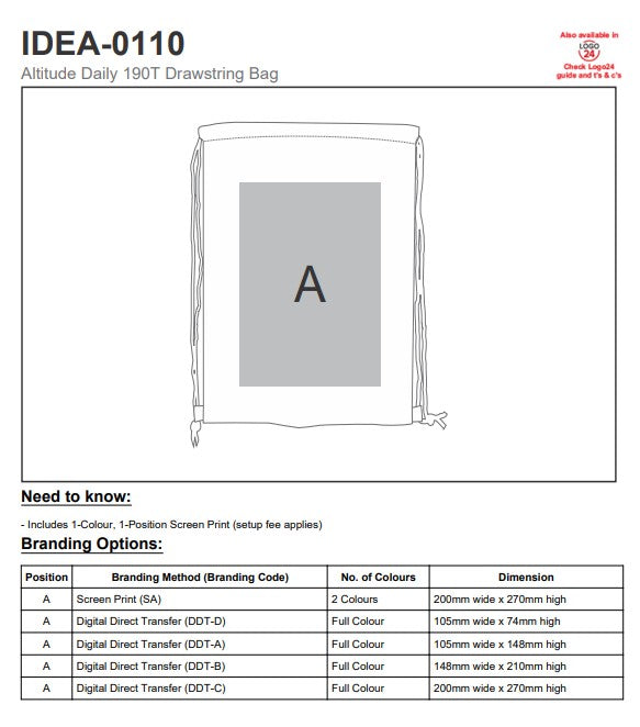 - Inclusive Of 1 Colour, 1 Position Screen Print*