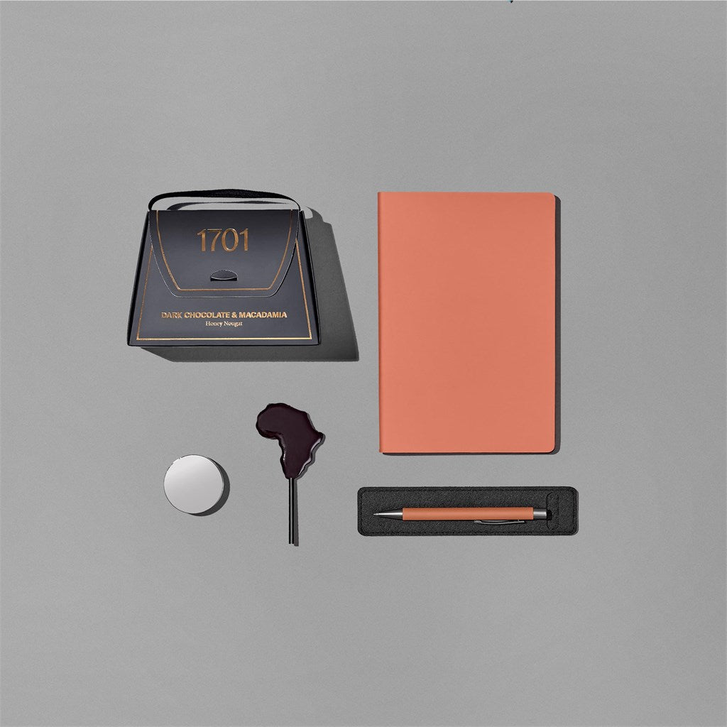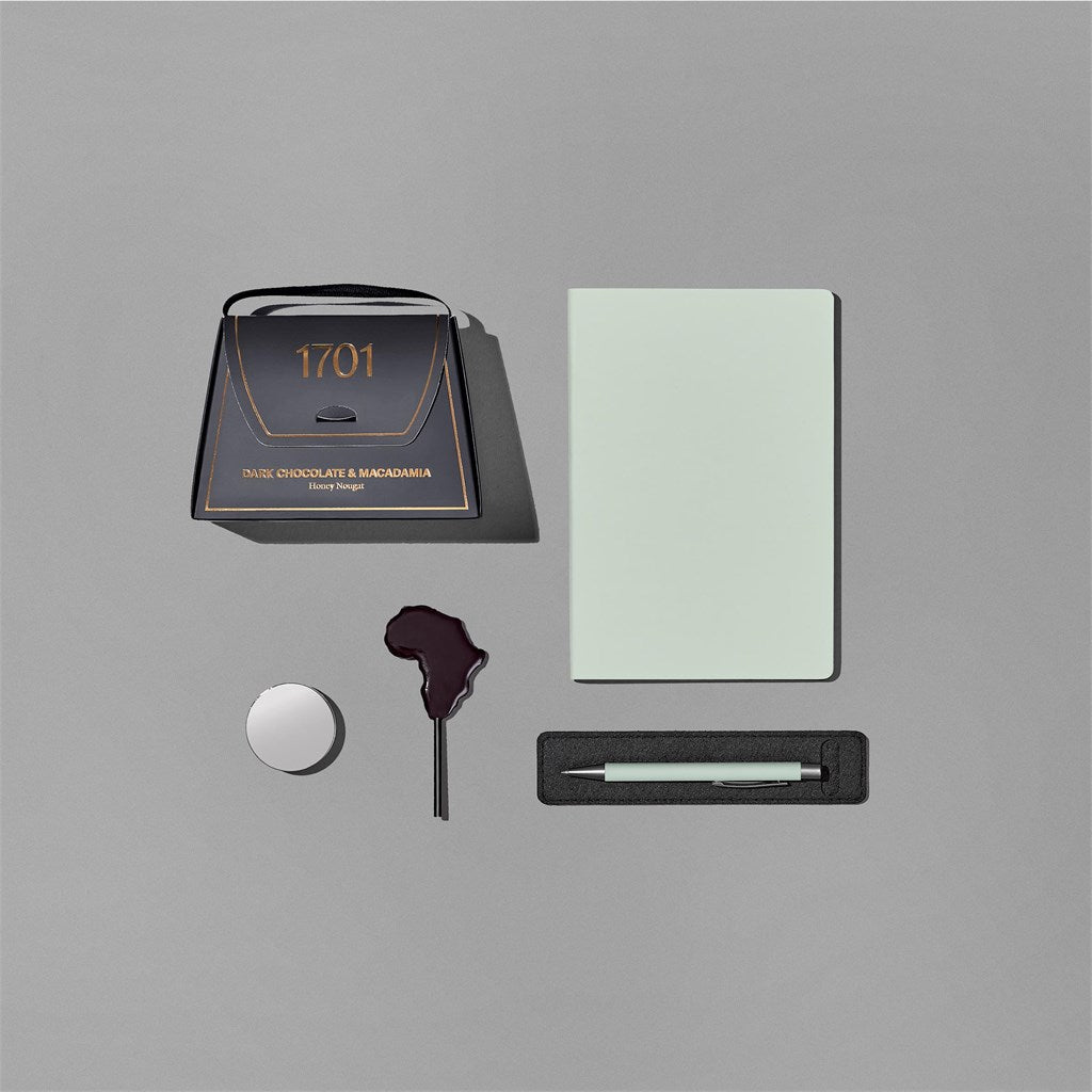 The Yatta range of hampers is expertly crafted to provide a delightful experience with a curated selection of premium items and edible treats. Elegantly presented in a Yatta drawstring bag, this hamper is further encased in a durable Dark Grey RPET felt gift bag.