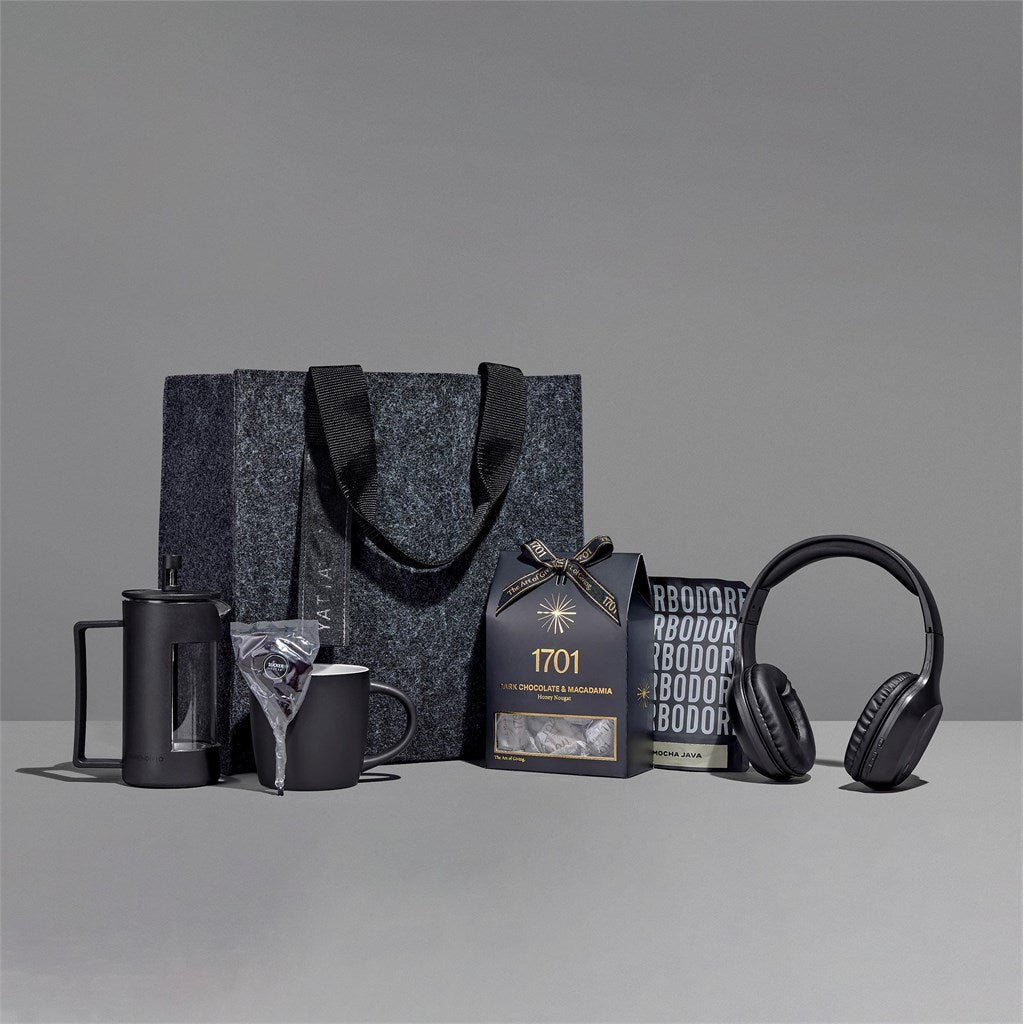 The Yatta range of hampers is expertly crafted to provide a delightful experience with a curated selection of premium items and edible treats. Elegantly presented in a Yatta drawstring bag, this hamper is further encased in a durable Dark Grey RPET felt gift bag.